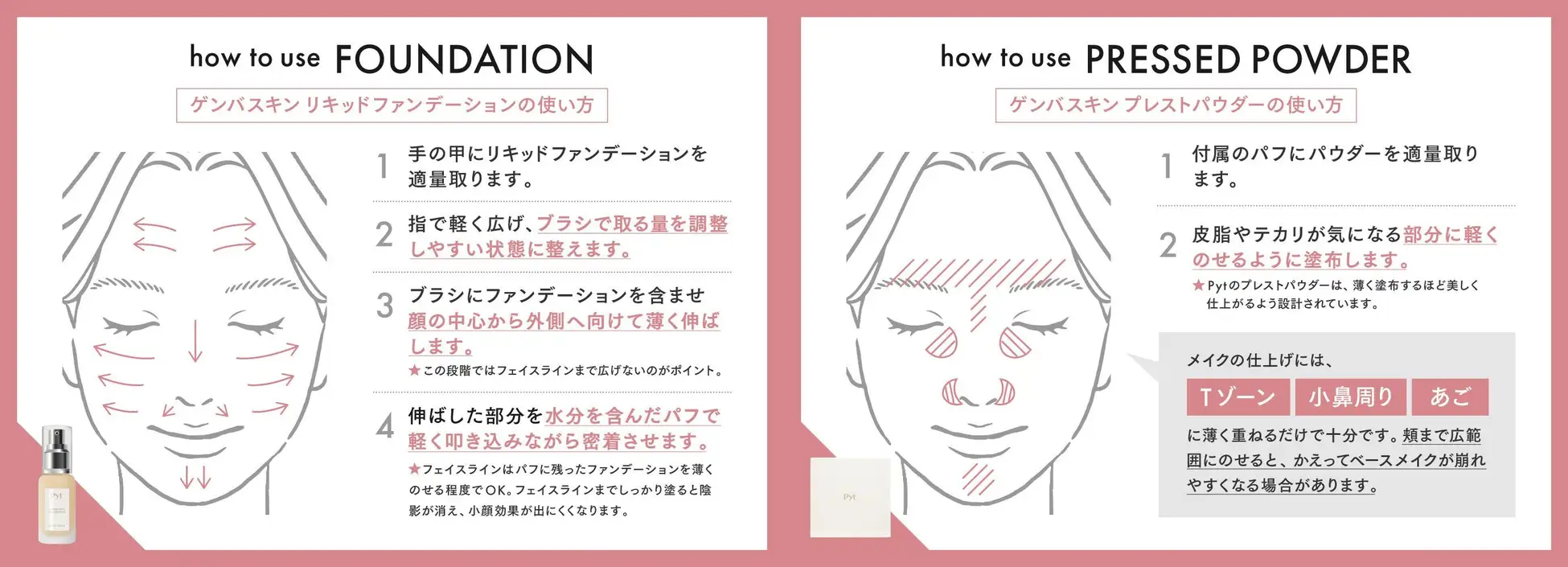 「ゲンバスキンファンデーション」は、Pytの“崩れないベースメイク”を支える要として、密着力を徹底追求して開発されたファンデーションです。肌に薄膜で均一に広がり、動き・汗・照明といった現場特有の負荷にも耐える強い密着膜を形成。時間が経ってもヨレや浮きが起きにくく、仕上がりの美しさをキープします。
