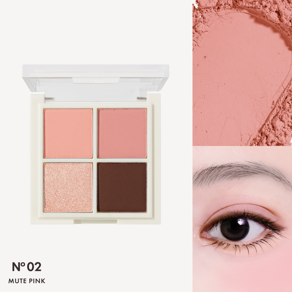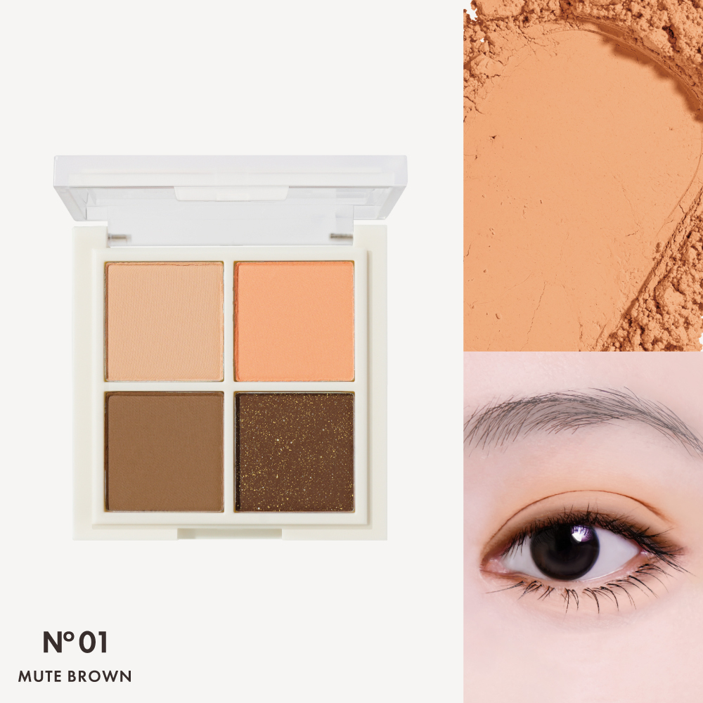 やわらかい粉体が瞼に密着し、見たままのカラーが発色します。デイリーに使える4色パレット。